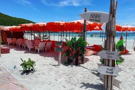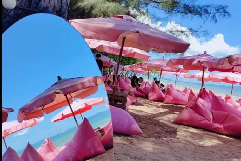 在泰國Pattaya的「粉紅沙灘」是超人氣沙灘網美咖啡廳。這裡的海灘以其粉紅色的遮陽傘和豆袋椅而聞名,室外座位區從戶外傘、懶骨頭、餐點全部以粉紅色為主題,如果您想要放鬆一下,可以在海邊踏踏浪,欣賞海天一色的美景。