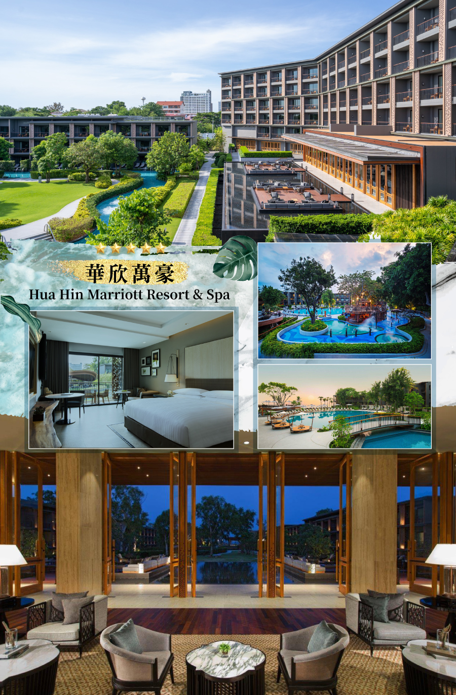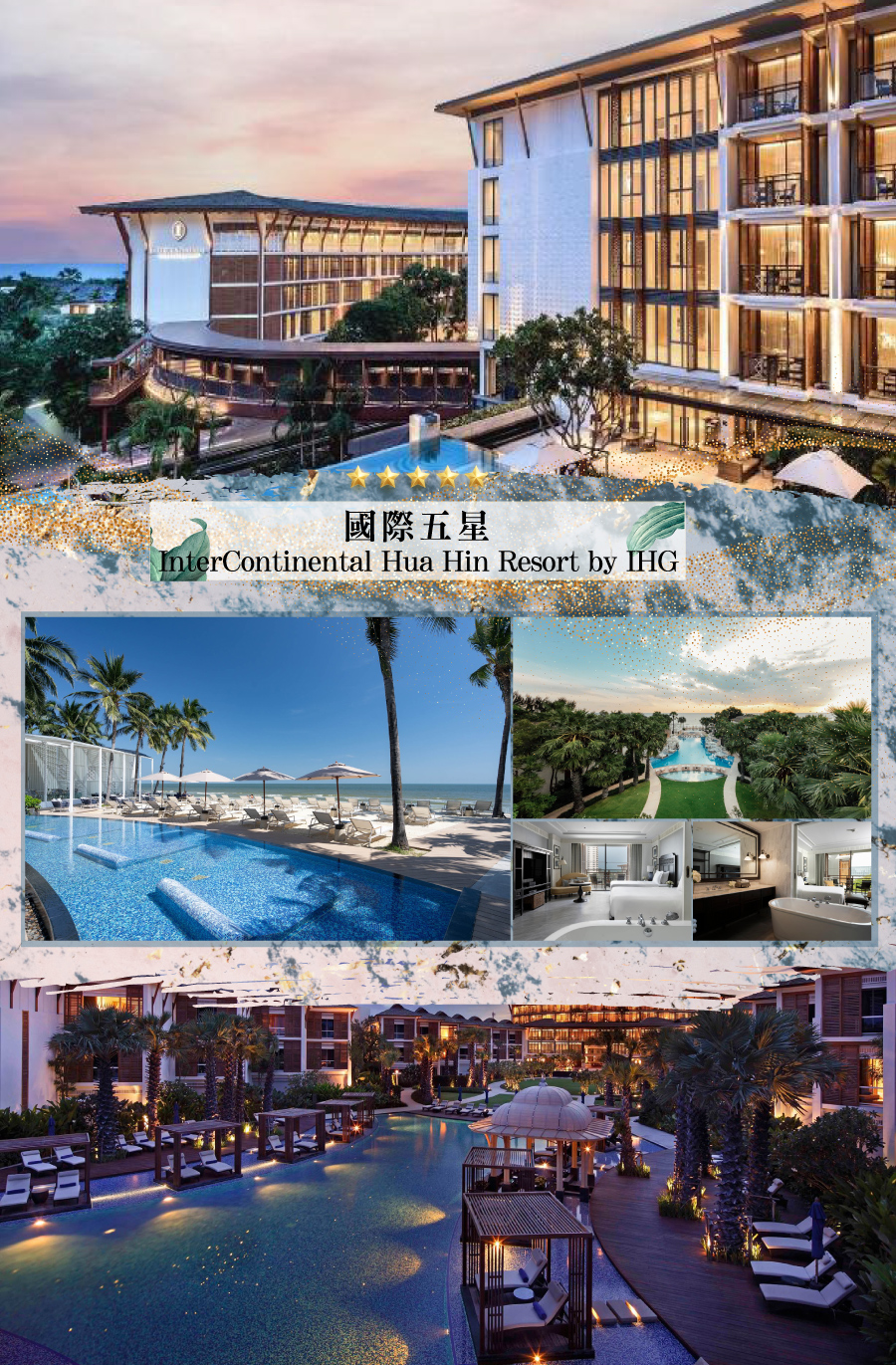 住宿:華欣萬豪水療度假酒店Hua Hin Marriott Resort & Spa 或 華欣洲際度假村InterContinental Hua Hin Resort 或同等級