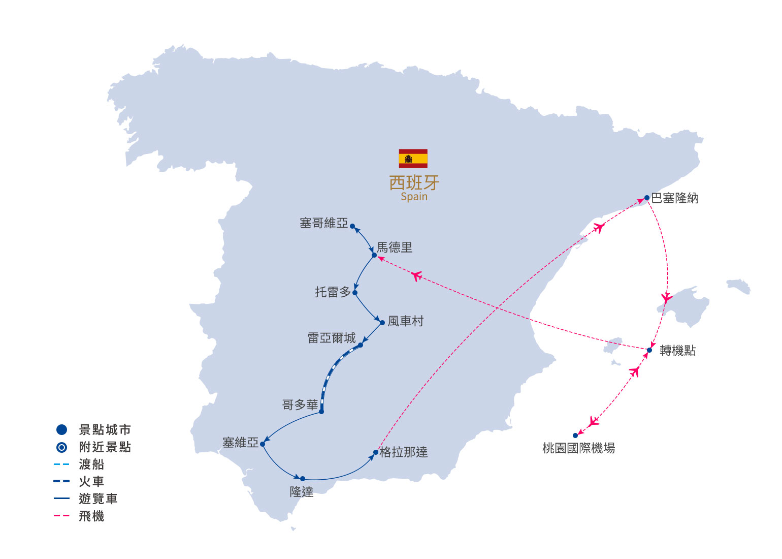 備註:如馬德里遇大型展覽,飯店客滿,則改入住其他鄰近城市,敬請見諒