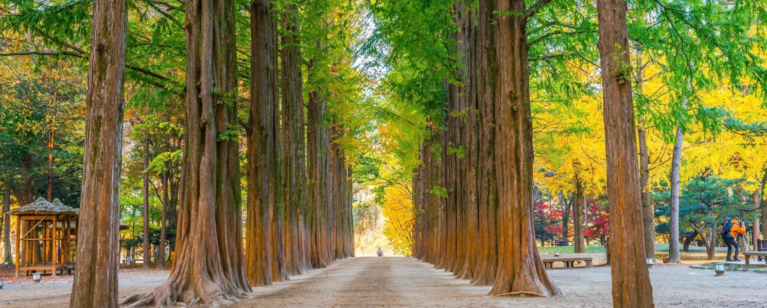 南怡島位於韓國江原道春川市,距離首爾約63公里,是深受旅客喜愛的自然生態勝地,因韓劇《冬季戀歌》取景而聲名大噪。島形如半月,四季景致分明;水杉大道與銀杏步道交織成詩意風景,藝術裝置點綴其間。春賞櫻花、夏享綠蔭、秋看楓紅銀杏、冬遇浪漫雪景,歲歲皆動人。