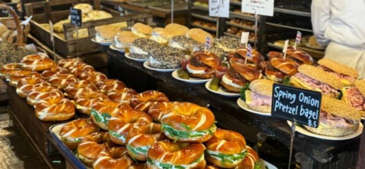 提到貝果,必定要提韓國最火紅的「倫敦貝果咖啡廳」。這家店不僅受到外國遊客喜愛,連韓國人也熱衷,開幕首月即登上全國銷售量第一。每顆貝果都精心製作,搭配創意餡料,吸引大量顧客。倫敦貝果咖啡廳提供18種貝果口味,從甜到鹹應有盡有,還有14種奶油乳酪可選,讓每位顧客都能根據自己的喜好創造獨特口味。