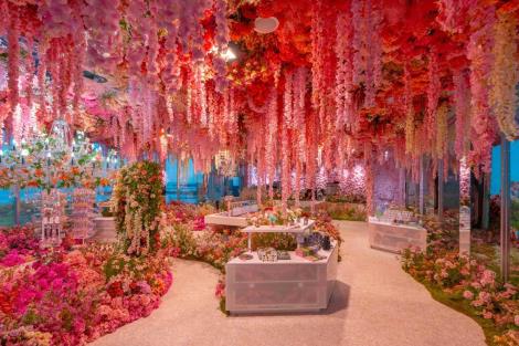 Super Flower 以「滿室盛開的鮮花」為主題,外觀吸睛、室內宛如走進浪漫花海溫室。只需點一杯飲品,即可享受前所未有的視覺與感官饗宴,顛覆你對咖啡廳的想像。品牌以花藝為核心,運用大量鮮花打造震撼空間,從入口、天花板到吧檯皆被花束與花牆環繞,並提供包包與飾品客製服務,宛如一座秘密花園。