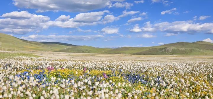 毛埡大草原位於四川省甘孜州理塘縣縣城以西,群山的環抱之中,如海的草原鬱鬱蔥蔥,這就是毛埡大草原;屬川西高寒草原,是沙魯里山脈中最大的山間草原,國道318線沿著草原北部穿行數十公里,一直延伸至海子山腳,景色怡人。