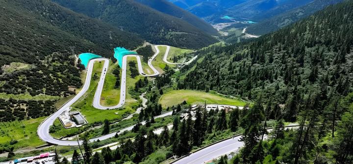 天路十八彎位於雅江開往理塘的路上,屬於四川境內的318國道,翻越海拔4659米的剪子灣山;大多數都是髮夾彎,是川藏線標誌性觀景點,已連續的髮夾灣及雲端景觀聞名。