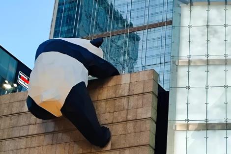 網紅熊貓「I am Here」是美國裝置藝術家勞倫斯·阿金特設計的作品,該裝置藝術高13米、重13噸,以雅安的野生熊貓為靈感打造,其形態為一隻試圖攀登成都IFS購物中心的大熊貓;該雕塑落成後,迅速成為整個成都市的標誌性景觀。