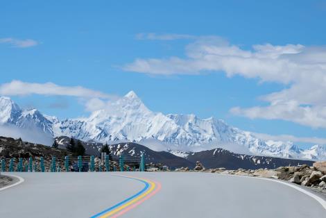 是川西高原上著名的網紅公路,以其獨特的三色藍、黃、粉紅標線,在雪山背景下宛如一道鋪展開的彩虹,景色壯麗,是攝影愛好者和自駕遊客的熱門打卡點,常能看到貢嘎雪山,體驗「雲端」飛馳的感覺。
