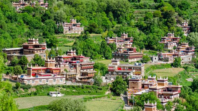 長青春科爾寺又稱「理塘寺」,是康區歷史最悠久、規模最大的藏傳佛教黃教寺廟,原為黑教寺廟,在明萬曆年間,三世達賴途經該地時改為黃教,並為其開光;聞名康區的格魯派寺廟理塘寺,就在縣城城北的中莫拉卡山的山坡上。