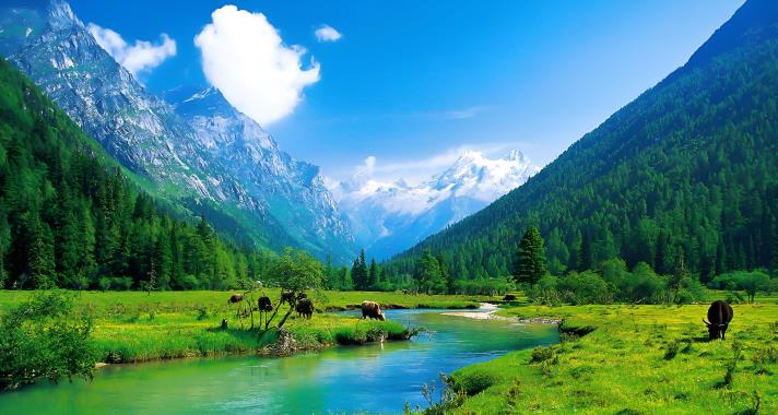 亞丁景區最著名的景點之一,是附近村民放牧的高山牧場,成群的牛羊在這裡享受著充足的陽光、青青的草地和純淨的湖水;每年5月草長鷹飛,風吹草低現犛牛,又背靠三座神山仙乃日、央邁勇、夏諾多吉,是觀看三座雪山的最佳地點。