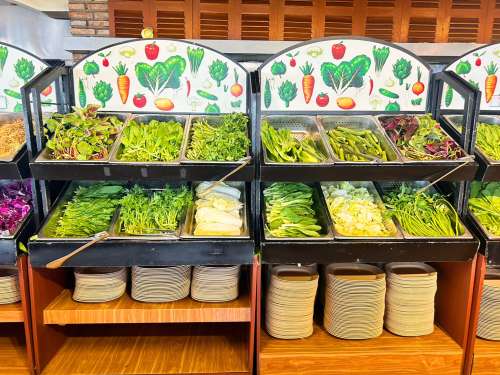 Léguda Buffet Rau大叻位於高海拔山區,出產極其新鮮且種類豐富的高山蔬菜,這家餐廳成為當地蔬菜必吃的餐廳。有超過 20 種新鮮高山蔬菜(如山茼蒿、奶油白菜、各式時蔬)、沙拉、沾醬、米粉/泡麵。
