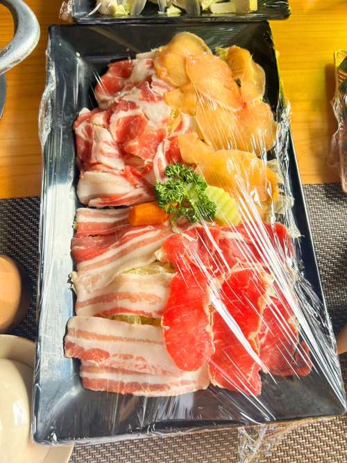 瓦片烤肉(Nướng Ngói)是越南芽莊大叻地區代表性的當地美食,特色是使用炭火泥爐支撐一片斜放的紅瓦片作為烤盤,在熱瓦片上刷上一層薄薄的油,防止食材黏盤,烤法導熱均勻且不易烤焦,吃法新穎有視覺效果,還帶有獨特的瓦片炭香。