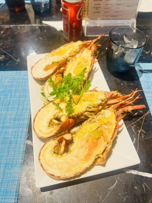 午餐:海鮮鱻味層層塔餐+龍蝦半隻,加贈每人一瓶汽水或啤酒USD18