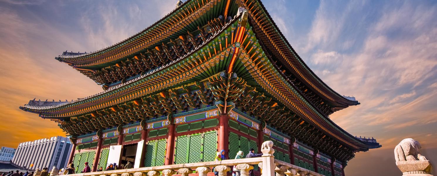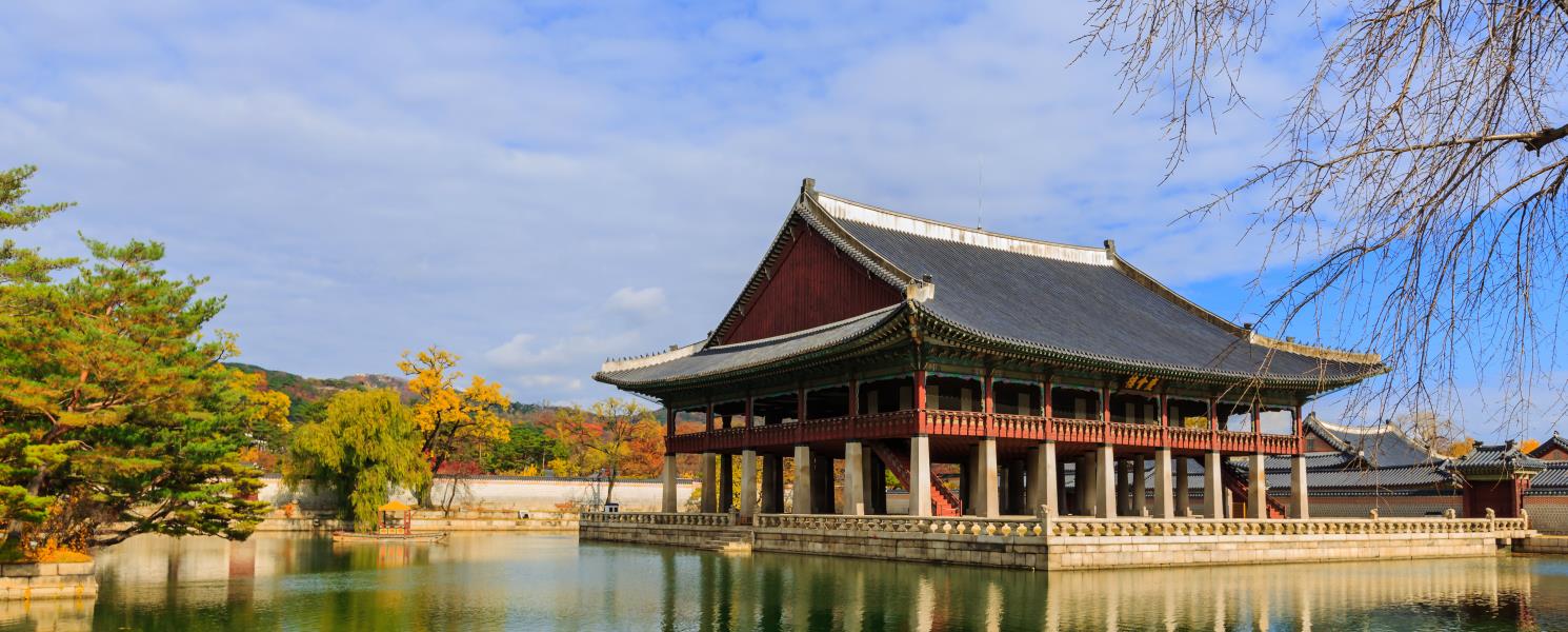 《景福宮》建於1395年為韓國最具代表性的宮闕,為五大宮闕之首。是朝鮮時代的重要歷史建築。宮內的《慶會樓》被蓮花池環繞,景致優美,是當時朝廷宴客、接待國外使節之場所,兩層樓挑高的建築設計,使內外合而為一,從遠方眺望時,後方層巒疊翠的山脈彷彿與木製屋簷構成山水畫,如癡如醉的景致。