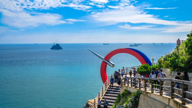 位於釜山影島最南端的太宗台,相傳新羅太宗武烈王曾被此地美景吸引,在此射箭休憩而得名。園區內松林蒼翠、奇岩峭壁與蔚藍大海交織成壯麗風光。環狀散步道全長約4.3公里,步行來回約2小時,另設DANUBI觀光列車,輕鬆暢遊太宗台