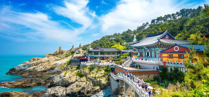 主奉觀音菩薩,與襄陽洛山寺、南海菩提庵並列韓國三大觀音聖地,最初稱為普門寺,1974年後因住持夢見白衣觀音乘龍升天,便將寺廟名稱更名為《龍宮寺》。最特別的景致當屬108階和日出岩。