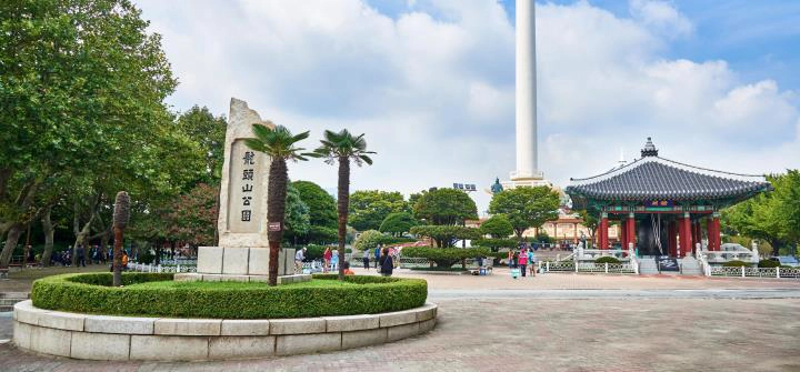 位於半山腰的龍頭山公園,是1876年紀念釜山開港口建造的公園,因建立公園的山麓外型就像一只龍頭,故此得名,至今已有130多年歷史,算是釜山市中歷史悠久的古蹟公園。
