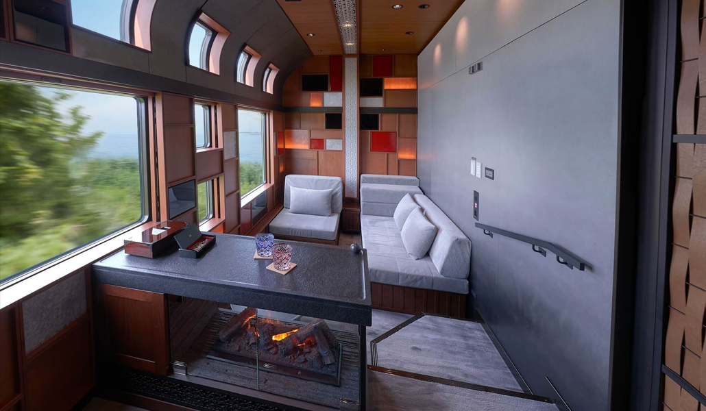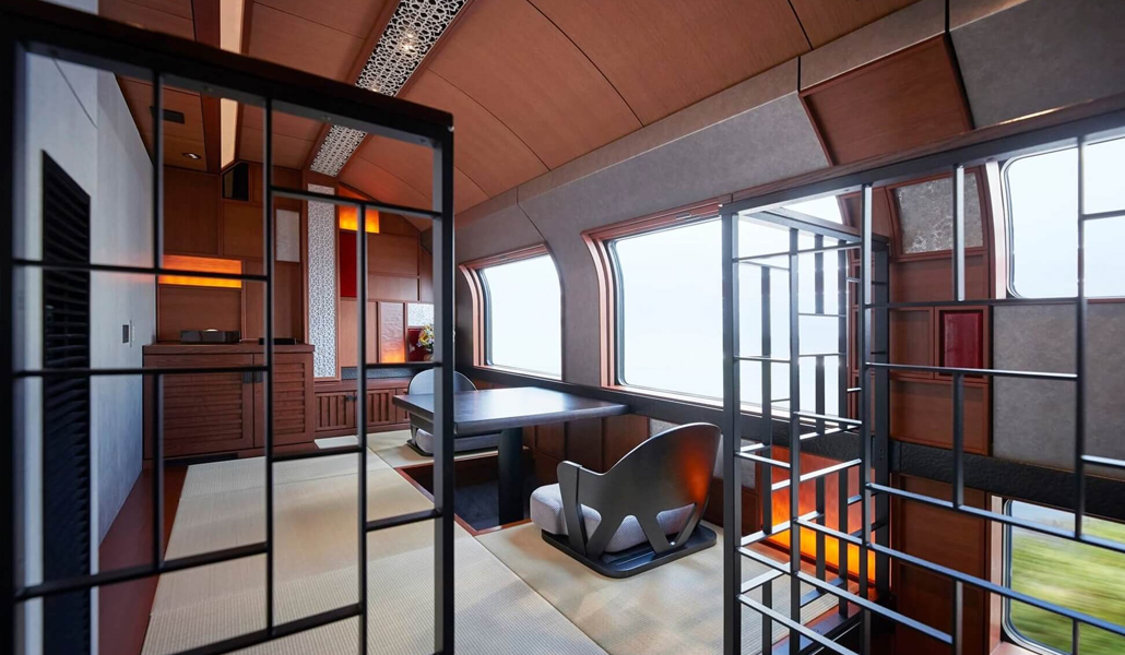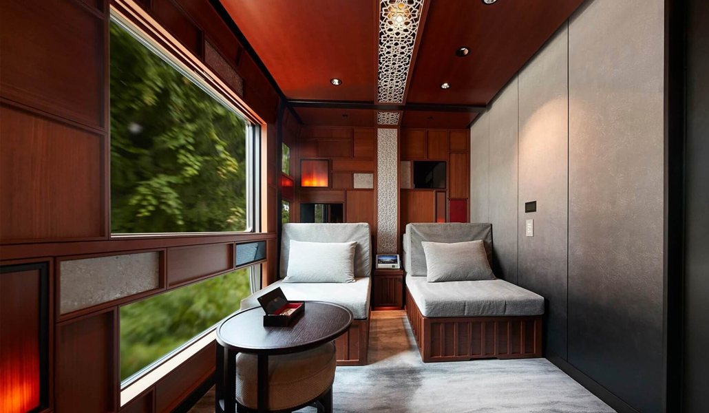 列車廂以四個季節區分,經大師之手完美融合東日本各地的傳統工藝,從名建築師隈研吾設計的「山形緞通」地毯到孕育自雪國的「會津塗」漆器,淡淡隱晦著日本各季之美。漫步其中,夏之綠意盎然、秋之端莊典雅、冬之柔和溫馨、春之風光明亮的氛圍轉換,正是四季島獨一無二的魅力所在。